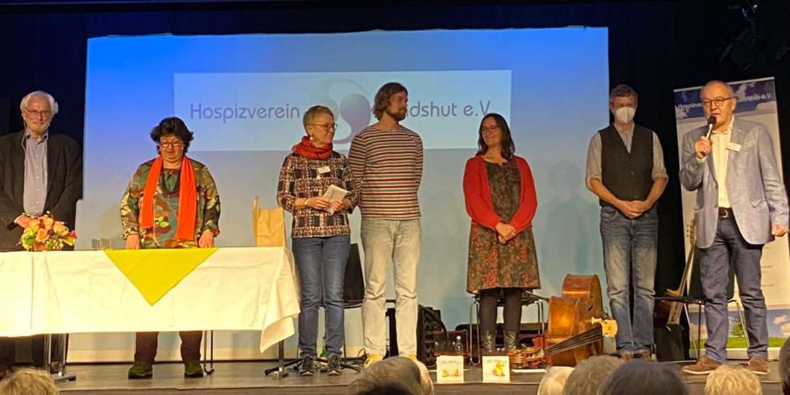 BU: Die Vorsitzenden im Hospizverein bedanken sich für die wunderbaren 90 Minuten. Von links: Ludwig Bichlmaier, Lisa Gusel, Lisa Hinrainer, Markus Mayer, Veronika Keglmaier, Mike Kadach.